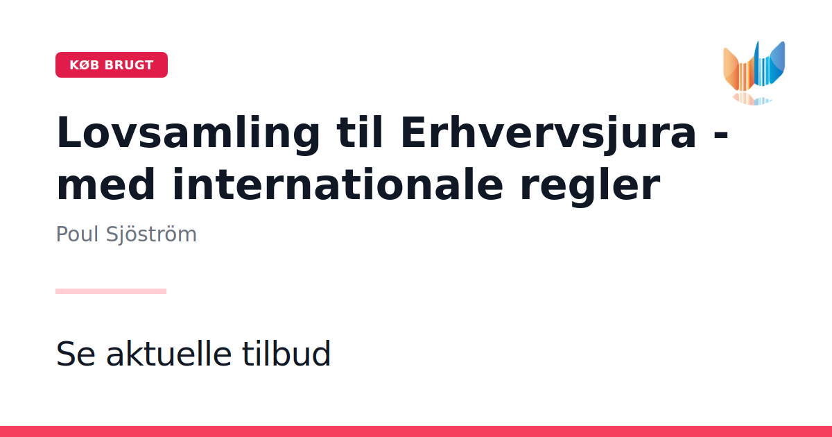 Lovsamling til Erhvervsjura - med internationale regler, 3. udgave, er et grundigt og ajourført opslagsværk målrettet alle med behov for overblik over dansk og international erhvervsret. Bogen dækker centrale danske love, EU-regler og internationale konventioner, som ofte anvendes i forbindelse med handel, eksport og transport. Denne tredje udgave fra 2002 er særligt tilrettelagt til undervisning på merkonomniveau, VVU-studier i erhvervsret samt erhvervsretsfag på handelshøjskoler. Samtidig vil den være et uundværligt værktøj for jurastuderende og professionelle i advokat- og rådgiverbranchen. Med sine 754 sider i robust indbinding giver lovsamlingen et fyldigt, men overskueligt overblik, der understøtter både teoretiske studier og praktisk anvendelse. Udgivet af Gyldendal og forfattet af Poul Sjöström, fremstår den som et pålideligt referenceværk for alle, der arbejder med erhvervsretlige problemstillinger.