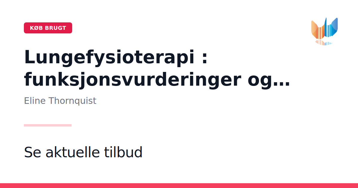 Eline Thornquist præsenterer i sin anden udgave af "Lungefysioterapi: funksjonsvurderinger og klinisk arbeid" en grundig gennemgang af vurderingsteknikker og kliniske metoder inden for lungefysioterapi. Bogen fokuserer på hvordan man foretager funktionsvurderinger med henblik på at styrke og optimere det kliniske arbejde. Udgivet af Gyldendal Akademisk i 2003, er denne 319-siders paperback et værdifuldt redskab for fagfolk og studerende, der arbejder med lungefysioterapi. Med sin systematiske tilgang og praktiske eksempler giver bogen indblik i de metoder, der kan anvendes til at vurdere og forbedre lungefunktionen i klinisk praksis.