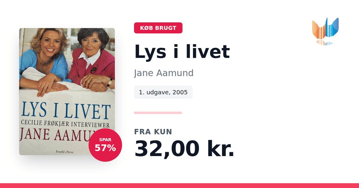 Lige nu kan du købe "Lys i livet" af Jane Aamund til kun 32,00 kr. Du sparer hele 57% af nyprisen! Bogen du ser her er brugt, og i perfekt stand. Vi har i øjeblikket kun et enkelt eksemplar til salg af "Lys i livet", så slå til mens du kan!