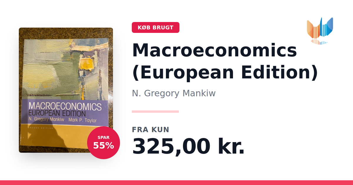 Lige nu kan du købe "Macroeconomics (European Edition)" af N. Gregory Mankiw til kun 325,00 kr. Du sparer hele 55% af nyprisen! Bogen du ser her er brugt, og i perfekt stand. Vi har i øjeblikket 2 eksemplarer til salg af "Macroeconomics (European Edition)", så husk at se de forskellige udgaver.