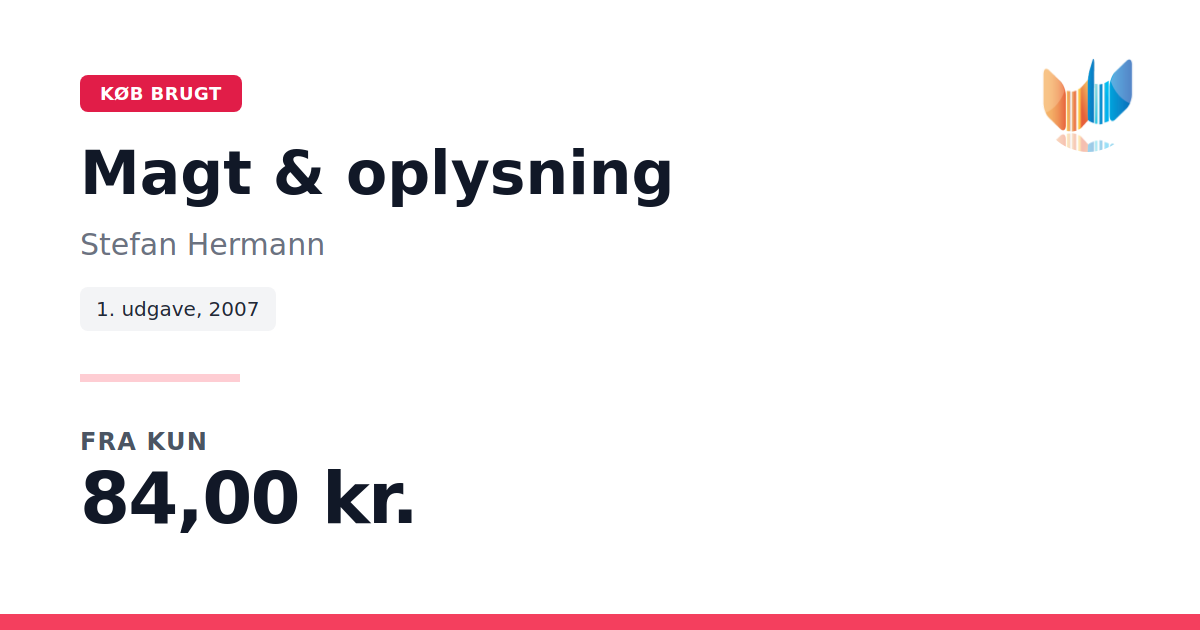 Lige nu kan du købe "Magt & oplysning" af Stefan Hermann til kun 84,00 kr. Du sparer hele 62% af nyprisen! Bogen du ser her er brugt, og i god stand. Vi har i øjeblikket kun et enkelt eksemplar til salg af "Magt & oplysning", så slå til mens du kan!