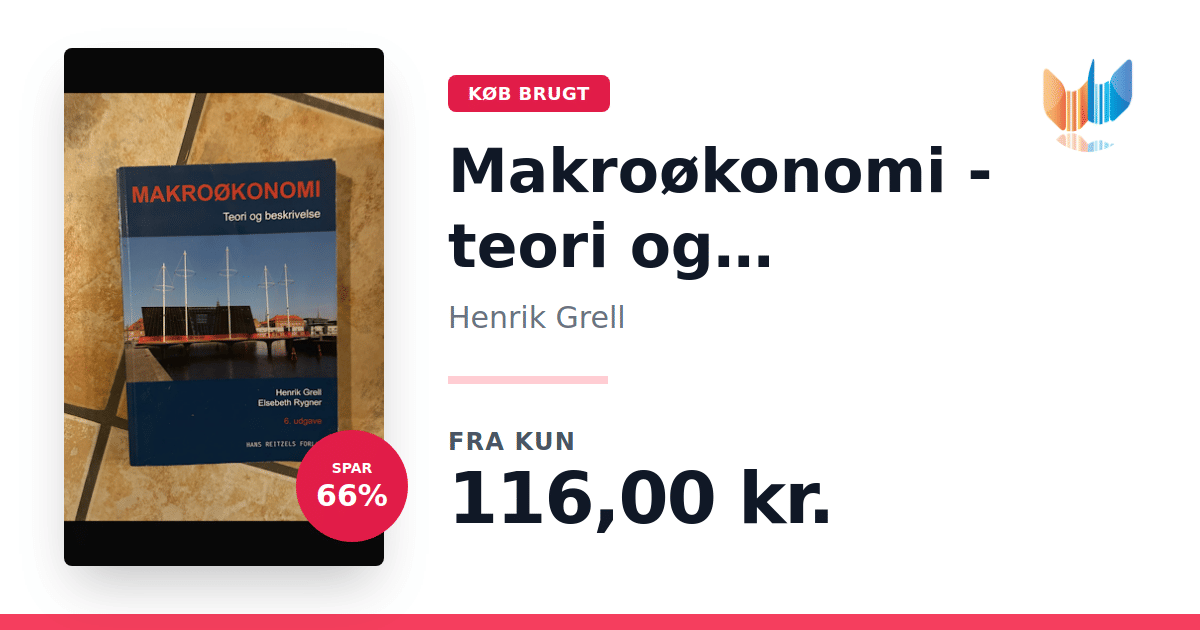 Lige nu kan du købe "Makroøkonomi - teori og beskrivelse" af Henrik Grell til kun 116,00 kr. Du sparer hele 66% af nyprisen! Bogen du ser her er brugt, og i perfekt stand. Vi har i øjeblikket 3 eksemplarer til salg af "Makroøkonomi - teori og beskrivelse", så husk at se de forskellige udgaver.
