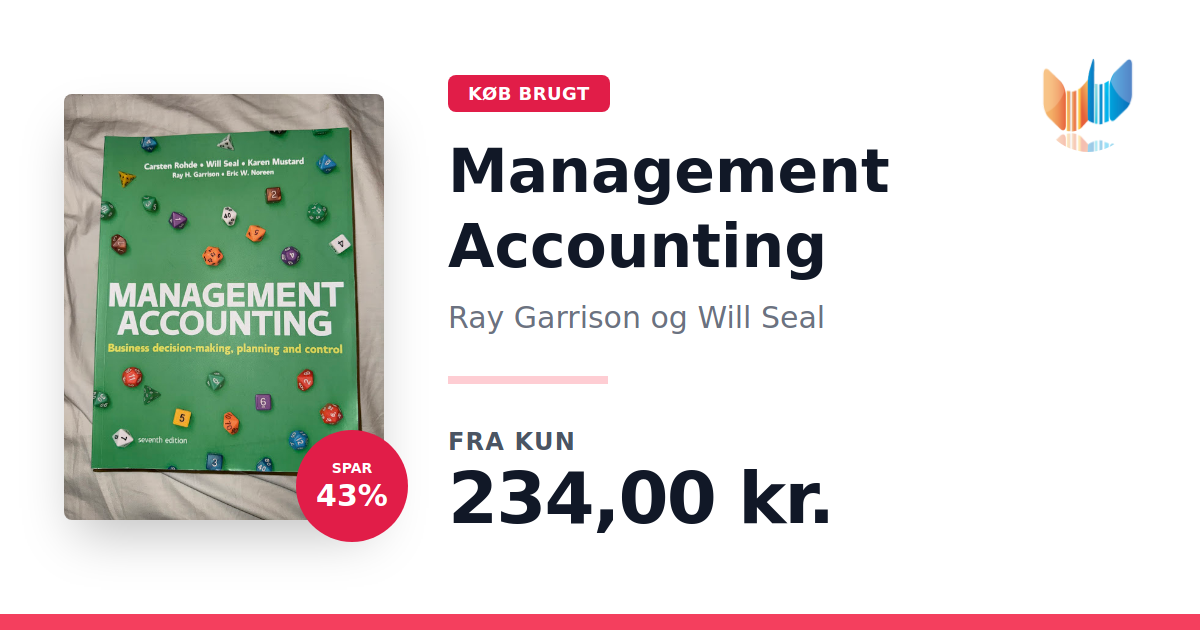 Lige nu kan du købe "Management Accounting" af Ray Garrison og Will Seal til kun 234,00 kr. Du sparer hele 43% af nyprisen! Bogen du ser her er brugt, og i god stand. Vi har i øjeblikket kun et enkelt eksemplar til salg af "Management Accounting", så slå til mens du kan!