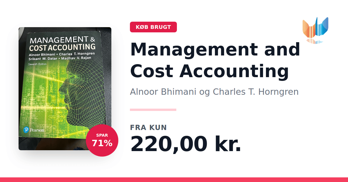 Lige nu kan du købe "Management and Cost Accounting" af Alnoor Bhimani og Charles T. Horngren til kun 220,00 kr. Du sparer hele 71% af nyprisen! Bogen du ser her er brugt, og i perfekt stand. Vi har i øjeblikket 4 eksemplarer til salg af "Management and Cost Accounting", så husk at se de forskellige udgaver.