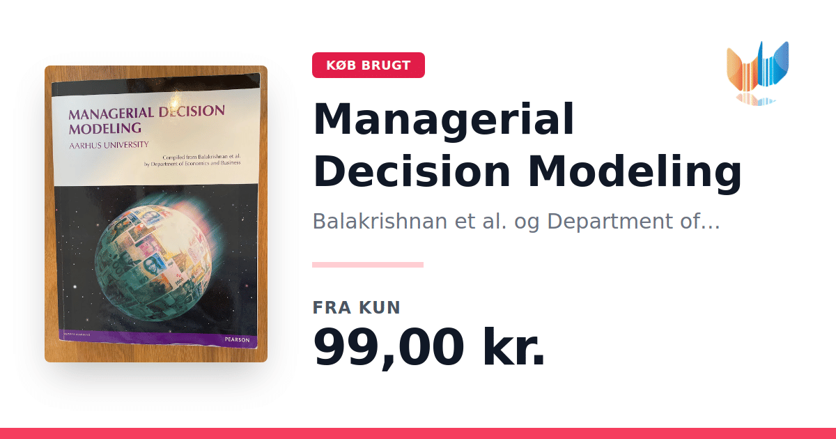 Lige nu kan du købe "Managerial Decision Modeling" af Balakrishnan et al. og Department of Economics and Business til kun 99,00 kr. Bogen du ser her er brugt, og i god stand. Vi har i øjeblikket 2 eksemplarer til salg af "Managerial Decision Modeling", så husk at se de forskellige udgaver.