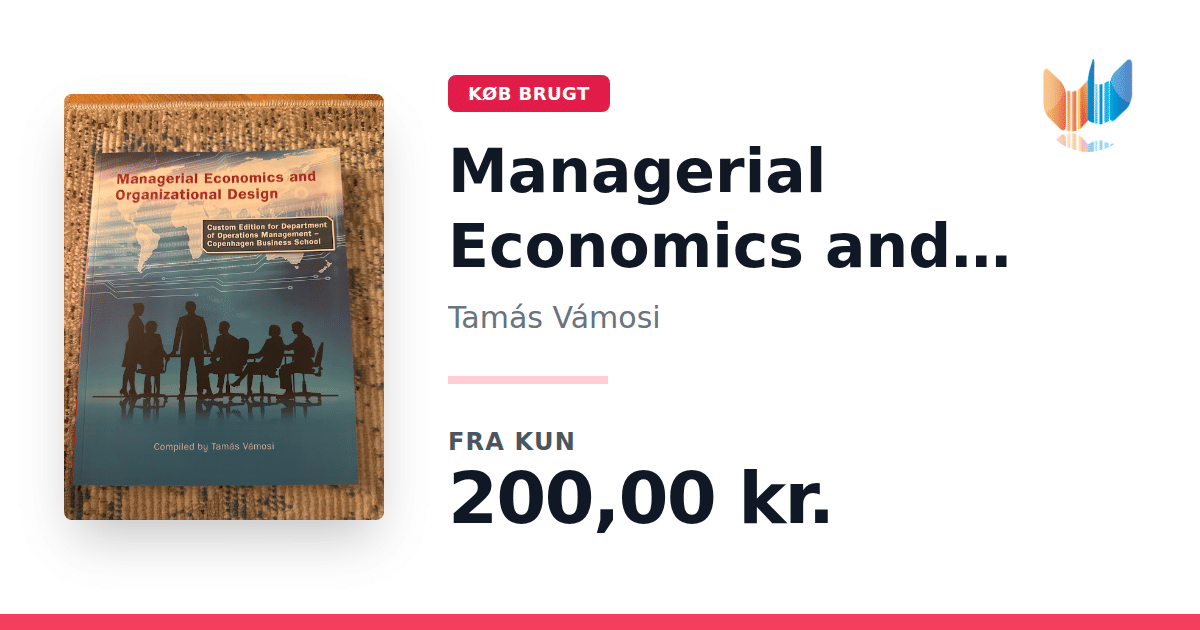 Lige nu kan du købe "Managerial Economics and Organizational Design" af Tamás Vámosi til kun 200,00 kr. Bogen du ser her er brugt, og i perfekt stand. Vi har i øjeblikket kun et enkelt eksemplar til salg af "Managerial Economics and Organizational Design", så slå til mens du kan!