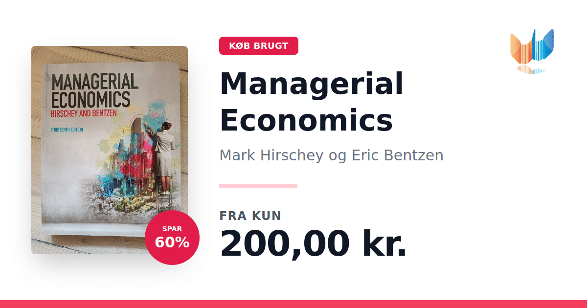 Managerial Economics af Mark Hirschey giver de studerende en praktisk introduktion til, hvordan økonomiske grundbegreber anvendes til at forstå forretningsverdenen og løse ledelsesmæssige udfordringer. Gennem letforståelige eksempler lærer læseren at bruge sin sunde fornuft som redskab i økonomisk analyse. Bogen præsenterer en integrativ tilgang, hvor vigtige beslutninger ses i et tværfagligt perspektiv. Her opbygges en basal valuationsmodel, som fungerer som virksomhedens økonomiske grundmodel, og hvert emne relateres til værdimaksimering gennem samspillet mellem regnskab, finans, marketing, personale og produktion. Endelig introduceres marginalanalyse og grundlæggende økonomiske sammenhænge, så læseren skærper sin økonomiske intuition og får et solidt værktøjskasse til at træffe velbegrundede ledelsesbeslutninger. 13. udgave, 864 sider.