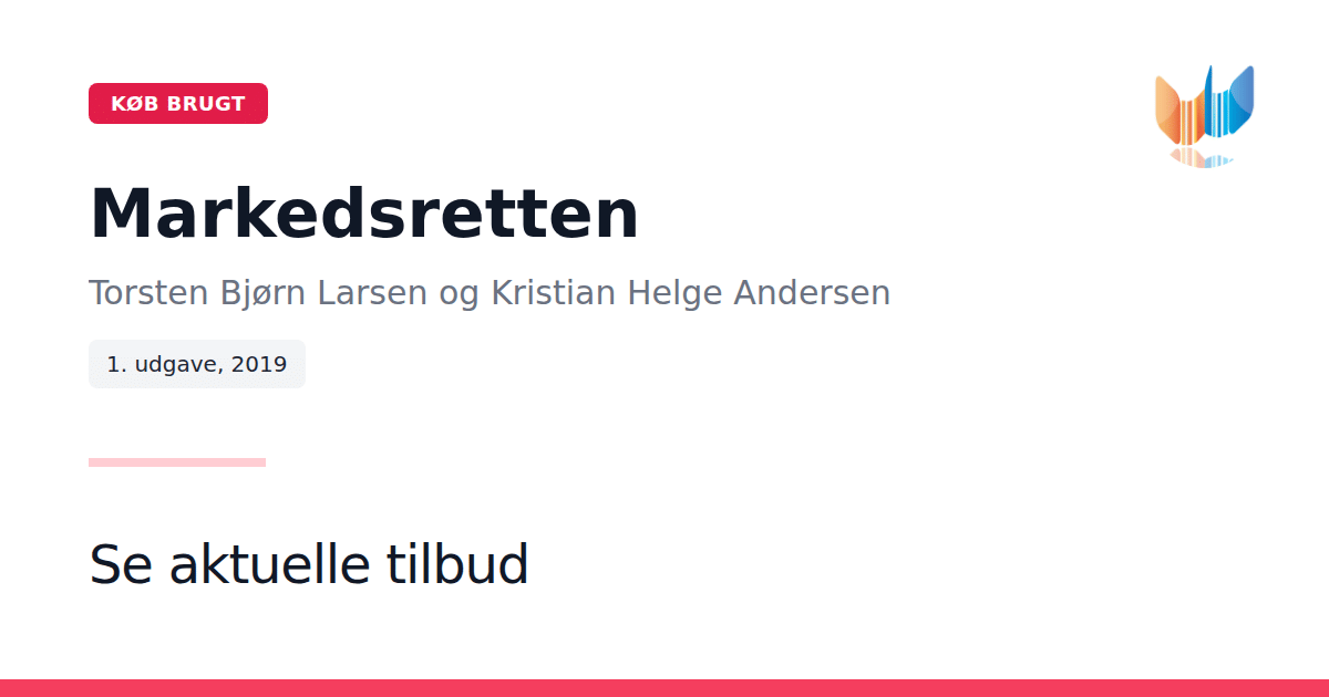 "Markedsretten" præsenterer en systematisk og dybdegående gennemgang af markedsrettens centrale principper, herunder de regler, der styrer den kommercielle afsætning af varer og tjenesteydelser med særligt fokus på IP-retten og konkurrenceretten. Bogen, udarbejdet af Torsten Bjørn Larsen og Kristian Helge Andersen, giver et struktureret overblik over retsreglerne inden for markedsretten og henvender sig primært til studerende på faget "Markedsret" ved Aalborg Universitet. Samtidig vil den være til gavn for studerende fra andre uddannelsesinstitutioner samt praktikere med interesse for området. Med sine 576 sider i hardcoverformat fra Karnov Group (2019) byder "Markedsretten" på en række skemaer, flowcharts og illustrative elementer, der understøtter en grundig forståelse af faget.