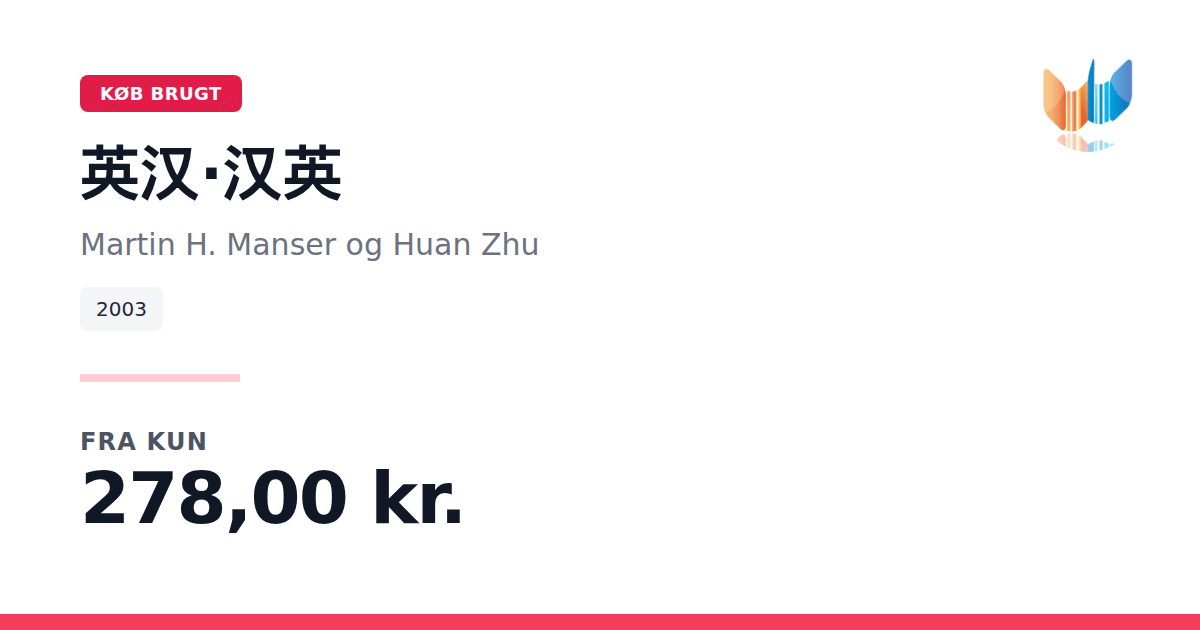 Lige nu kan du købe "英汉·汉英" af Martin H. Manser og Huan Zhu til kun 278,00 kr. Bogen du ser her er brugt, og i perfekt stand. Vi har i øjeblikket kun et enkelt eksemplar til salg af "英汉·汉英", så slå til mens du kan!