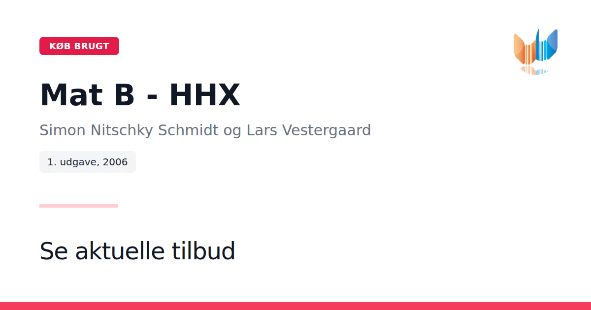 Mat B - HHX er en grundig matematikbog, der henvender sig til studerende på HHX og præsenterer centrale matematiske emner på en overskuelig måde. Bogen, der udkom i 2006 som sin første udgave, er udarbejdet af Simon Nitschky Schmidt, Lars Vestergaard og Peter Bregendal og rummer 447 velstrukturerede sider. Udgivet af Systime i paperback-format, er Mat B - HHX et værdifuldt redskab, der understøtter forståelsen af matematikken på dit uddannelsesniveau. Den indbyrdes rødder fast i et klart og didaktisk tilrettelagt materiale, som både studerende og undervisere kan drage nytte af.