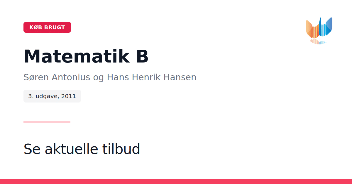 Matematik B, 3. udgave fra 2011, er omhyggeligt sammensat med henblik på at opfylde læreplanens krav fra 2010. Bogen tilbyder et solidt matematisk fundament kombineret med en introduktion til matematik som videnskabsfag og præsenterer fagets metoder på en overskuelig måde. Med et indledende afsnit om matematik generelt, lægger denne udgave vægt på elevens forståelse gennem talrige øvelser, eksempler og opgaver. Eksemplerne suppleres af en række CAS-opgaver, hvor løsninger i både Nspire og Maple kan findes på det tilhørende website. Herudover indeholder bogen et dedikeret kapitel om modellering med opgaver, der styrker den praktiske anvendelse af matematikkens principper. Desuden inddrager Matematik B relevant Matematik A-stof, idet kernestof og supplerende emner, som for eksempel statistik og sandsynlighedsregning, tydeligt skilles ad. Bogen er designet med en fleksibel opbygning, der giver mulighed for løbende justeringer via websitet, så den forbliver ajour med tidens pædagogiske krav.