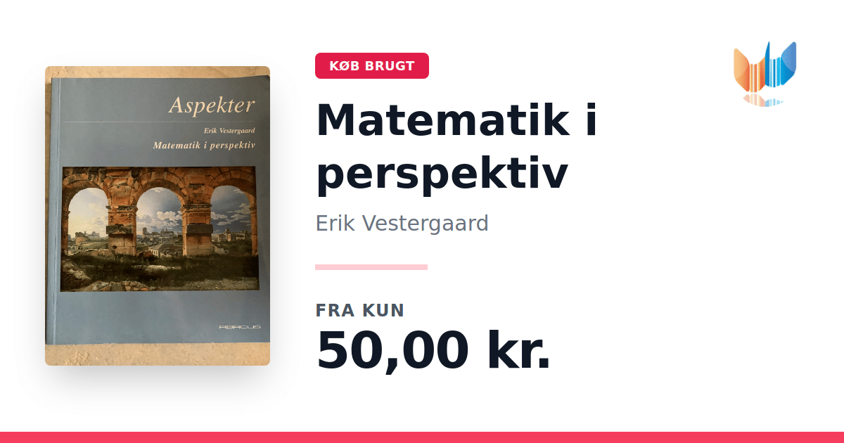 Lige nu kan du købe "Matematik i perspektiv" af Erik Vestergaard til kun 50,00 kr. Bogen du ser her er brugt, og i slidt stand. Vi har i øjeblikket kun et enkelt eksemplar til salg af "Matematik i perspektiv", så slå til mens du kan!