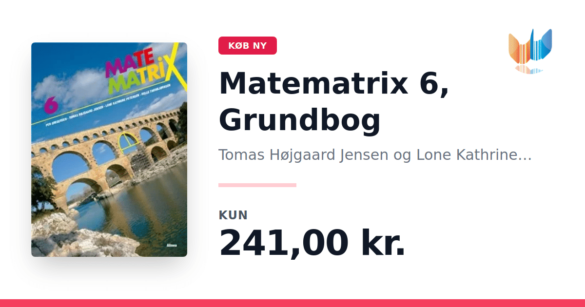 Matematrix 6, Grundbog er første udgave af en solid flergangsbog til matematikundervisningen i 6. klasse. Skrevet af Tomas Højgaard Jensen, Lone Kathrine Petersen, Helle Thorbjørnsen, Per Gregersen og Lone K. Petersen, og udgivet af Alinea i 2009, byder den på 160 sider i et overskueligt hardcover-format. Bogen kombinerer plads til leg, spil og intuitiv tænkning med et klart fokus på de grundlæggende matematiske færdigheder. Hvert afsnit indledes med konkrete gennemgange og illustrative eksempler, så eleverne trygt ledes igennem kernestoffet. Et bredt udvalg af opgaver og øvelser giver mulighed for differentieret undervisning. De varierede aktiviteter styrker forståelsen af mellemtrinnets matematiske begreber og viser deres praktiske anvendelse i hverdagen. Matematrix 6 består af ti faglige kapitler og ti repetitionssider. De behandlede emner er: Algebra Flytninger Ligninger Tegning Brøker Procent Sammenhænge Statistik og sandsynlighed Formler Virkelighed og matematik Derudover præsenterer bogen otte åbne undersøgelser, hvor eleverne selv vælger fremgangsmåde og omfang. Temaerne er: Tessellationer Tallenes historie Danmarks natur Trafik Sudoku Akvarier Prisforskelle Affald
