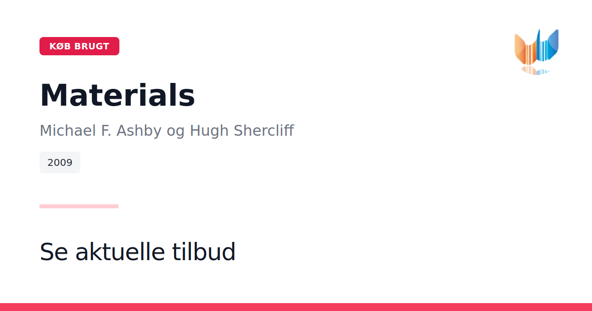 Materials: Engineering, Science, Processing and Design er en autoritativ grundbog fra 2009 af Michael F. Ashby, Hugh Shercliff og David Cebon, udgivet på Elsevier Science & Technology. Den giver en systematisk introduktion til materialers struktur, egenskaber, forarbejdning og design. På sine 672 sider gennemgår bogen metaller, keramik, polymerer og kompositter med en balanceret kombination af teoretiske forklaringer, praktiske eksempler og illustrative diagrammer. Fokus ligger på sammenhængen mellem materialernes opbygning, deres fremstillingsprocesser og slutbrug i ingeniørprojekter. Med en helhedsorienteret tilgang henvender titlen sig til studerende på maskin-, civil-, produktions- og designingeniøruddannelser og fungerer både som undervisningsgrundlag og som et solidt opslagsværk for fagfolk.