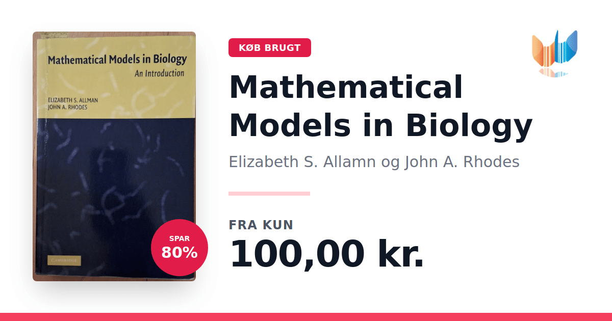 Lige nu kan du købe "Mathematical Models in Biology" af Elizabeth S. Allamn og John A. Rhodes til kun 100,00 kr. Du sparer hele 80% af nyprisen! Bogen du ser her er brugt, og i perfekt stand. Vi har i øjeblikket kun et enkelt eksemplar til salg af "Mathematical Models in Biology", så slå til mens du kan!