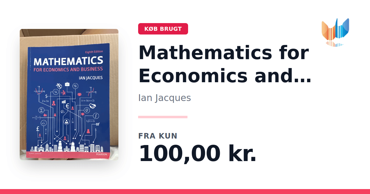 Lige nu kan du købe "Mathematics for Economics and Business" af Ian Jacques til kun 100,00 kr. Bogen du ser her er brugt, og i god stand. Vi har i øjeblikket 2 eksemplarer til salg af "Mathematics for Economics and Business", så husk at se de forskellige udgaver.