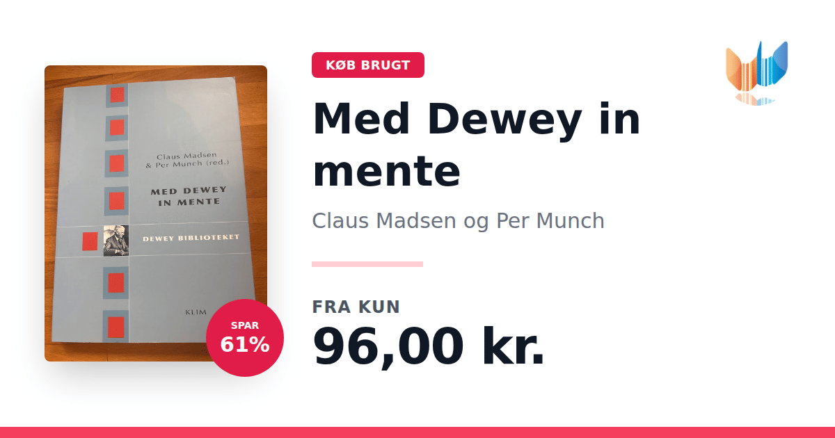 Lige nu kan du købe "Med Dewey in mente" af Claus Madsen og Per Munch til kun 96,00 kr. Du sparer hele 61% af nyprisen! Bogen du ser her er brugt, og i perfekt stand. Vi har i øjeblikket kun et enkelt eksemplar til salg af "Med Dewey in mente", så slå til mens du kan!