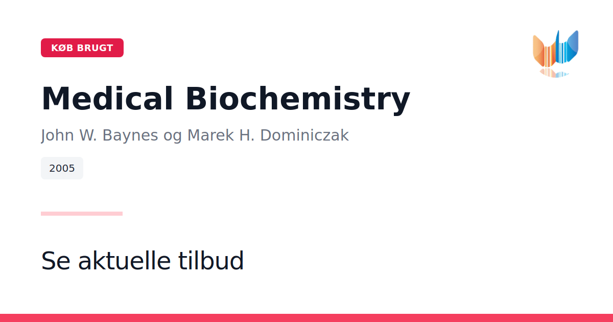 Medical Biochemistry er en omfattende lærebog, der på en klar og overskuelig måde forener grundlæggende biokemi med kliniske perspektiver. Denne fuldt reviderede 2005-udgave af John W. Baynes og Marek H. Dominiczak indeholder de nyeste indsigter inden for molekylærbiologi og genetik. Teksten er beriget med farverige illustrationer, avancerede konceptbokse og autentiske patientcases, som tydeliggør komplekse biokemiske processer og deres kliniske betydning. Nye oversigtsbokse og en udvidet selvvurderingssektion hjælper med at repetere og konsolidere kernestoffet. Supplerende digitale ressourcer omfatter fuldtekst online, en omfattende billedbank, case-studier, spørgsmål i USMLE-stil samt mulighed for personlig notetagning - alt sammen med til formål at optimere din indlæring og forberedelse.