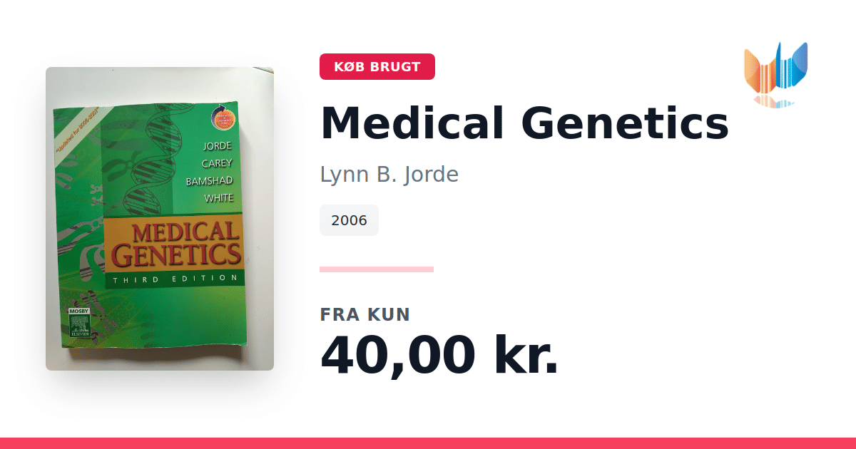 Lige nu kan du købe "Medical Genetics" af Lynn B. Jorde til kun 40,00 kr. Bogen du ser her er brugt, og i god stand. Vi har i øjeblikket 4 eksemplarer til salg af "Medical Genetics", så husk at se de forskellige udgaver.