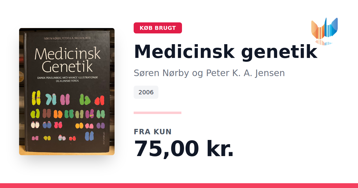 Lige nu kan du købe "Medicinsk genetik" af Søren Nørby og Peter K. A. Jensen til kun 75,00 kr. Bogen du ser her er brugt, og i god stand. Vi har i øjeblikket kun et enkelt eksemplar til salg af "Medicinsk genetik", så slå til mens du kan!