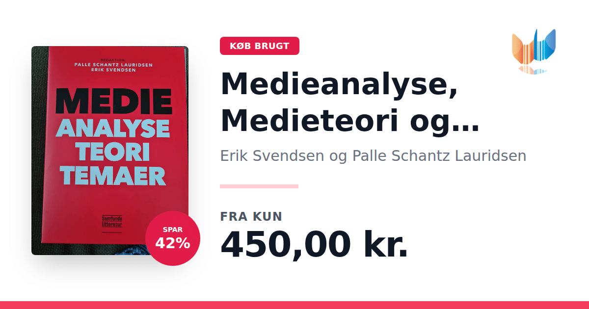 Lige nu kan du købe "Medieanalyse, Medieteori og Medietemaer" af Erik Svendsen og Palle Schantz Lauridsen til kun 450,00 kr. Du sparer hele 42% af nyprisen! Bogen du ser her er brugt, og i perfekt stand. Vi har i øjeblikket kun et enkelt eksemplar til salg af "Medieanalyse, Medieteori og Medietemaer", så slå til mens du kan!