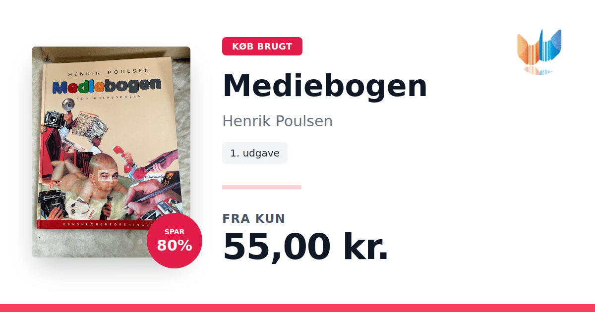 Lige nu kan du købe "Mediebogen" af Henrik Poulsen til kun 55,00 kr. Du sparer hele 80% af nyprisen! Bogen du ser her er brugt, og i god stand. Vi har i øjeblikket kun et enkelt eksemplar til salg af "Mediebogen", så slå til mens du kan!