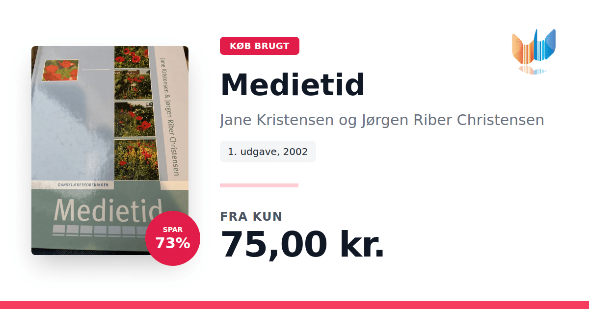 Lige nu kan du købe "Medietid" af Jane Kristensen og Jørgen Riber Christensen til kun 75,00 kr. Du sparer hele 73% af nyprisen! Bogen du ser her er brugt, og i god stand. Vi har i øjeblikket kun et enkelt eksemplar til salg af "Medietid", så slå til mens du kan!