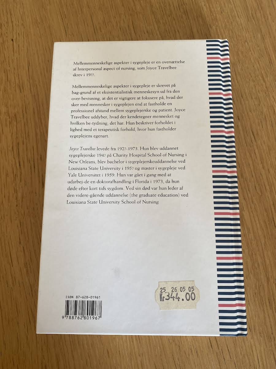 Mellemmenneskelige aspekter i sygepleje er en dansk oversættelse af Joyce Travelbees banebrydende værk Interpersonal aspect of nursing, der oprindeligt blev udgivet i 1966. Bogen er forankret i et eksistentialistisk menneskesyn, hvor fokus ligger på det levende møde mellem sygeplejerske og patient. I stedet for at opretholde en fast professionel afstand, giver Travelbee plads til, at den menneskelige kontakt og det terapeutiske forhold får hovedrollen. Med sin dybdegående tilgang kaster bogen lys over, hvordan de interpersonelle relationer kan berige sygeplejen. Joyce Travelbee formidler med indsigt, hvorfor det er essentielt at se individets erfaringer og behov i centrum for plejen, og hvordan dette perspektiv bidrager til sygeplejens unikke identitet. Denne første udgave fra 2002 inviterer læseren til en refleksion over, hvad det vil sige at levere omsorg med både hjerte og fornuft.