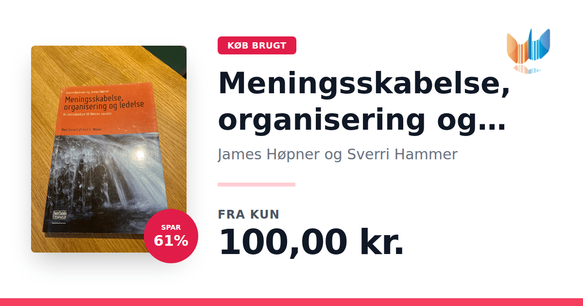 Med "Meningsskabelse, organisering og ledelse – En introduktion til Weicks univers" præsenterer James Høpner og Sverri Hammer en indsigtsfuld introduktion til de centrale ideer, som Karl E. Weick har udviklet gennem sin karriere. Bogen tilbyder en dybdegående undersøgelse af, hvordan moderne organisationer skaber mening, og hvordan de processuelle relationer samt løst koblede systemer former vores måde at organisere os på. I den første del af værket kastes der lys over et procesperspektiv, der fokuserer på indbyrdes relationer og de fleksible strukturer, der kendetegner nutidens organisationer. Herefter uddybes temaet meningsskabelse – et af Weicks mest kendte bidrag til samfundsvidenskaben – med fokus på, hvordan vi fortolker og navigerer i en verden under konstant forandring. Afslutningsvis undersøger bogen ledelsespraksisser set ud fra et Weick-inspireret perspektiv, og giver dermed et unikt indblik i, hvordan strategisk ledelse og forandringsledelse kan forstås og praktiseres. Udgivet af Samfundslitteratur i 2014 i paperback tilbyder denne bog et solidt teoretisk fundament for alle, der ønsker at fordybe sig i dynamikken mellem meningsskabelse, organisering og ledelse.
