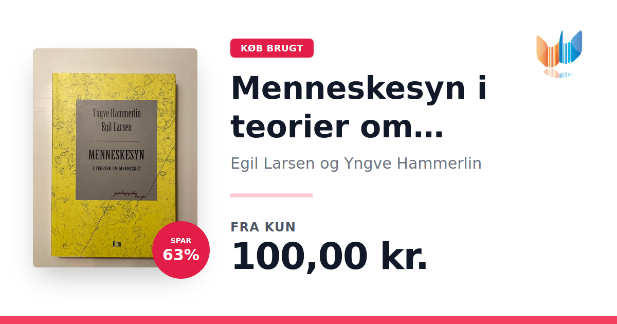 Lige nu kan du købe "Menneskesyn i teorier om mennesket" af Egil Larsen og Yngve Hammerlin til kun 100,00 kr. Du sparer hele 63% af nyprisen! Bogen du ser her er brugt, og i slidt stand. Vi har i øjeblikket 2 eksemplarer til salg af "Menneskesyn i teorier om mennesket", så husk at se de forskellige udgaver.