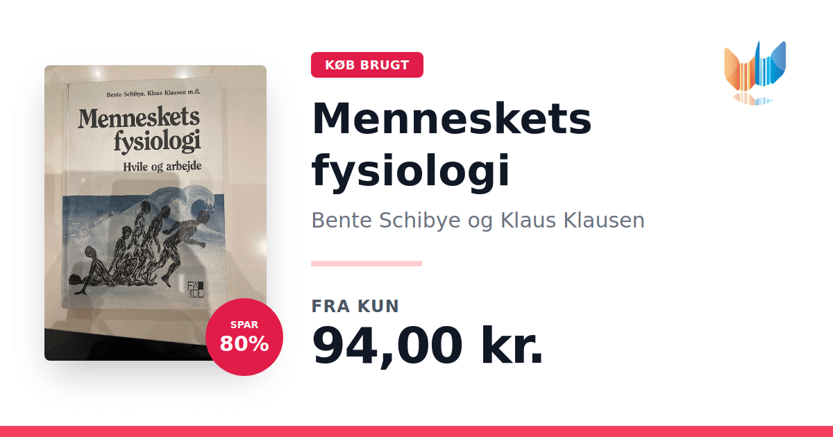 Lige nu kan du købe "Menneskets fysiologi" af Bente Schibye og Klaus Klausen til kun 94,00 kr. Du sparer hele 80% af nyprisen! Bogen du ser her er brugt, og i god stand. Vi har i øjeblikket 6 eksemplarer til salg af "Menneskets fysiologi", så husk at se de forskellige udgaver.