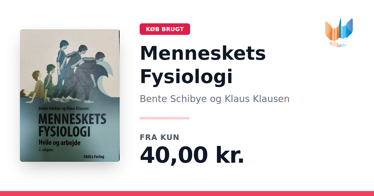 Lige nu kan du købe "Menneskets Fysiologi" af Bente Schibye og Klaus Klausen til kun 40,00 kr. Bogen du ser her er brugt, og i god stand. Vi har i øjeblikket 10 eksemplarer til salg af "Menneskets fysiologi", så husk at se de forskellige udgaver.