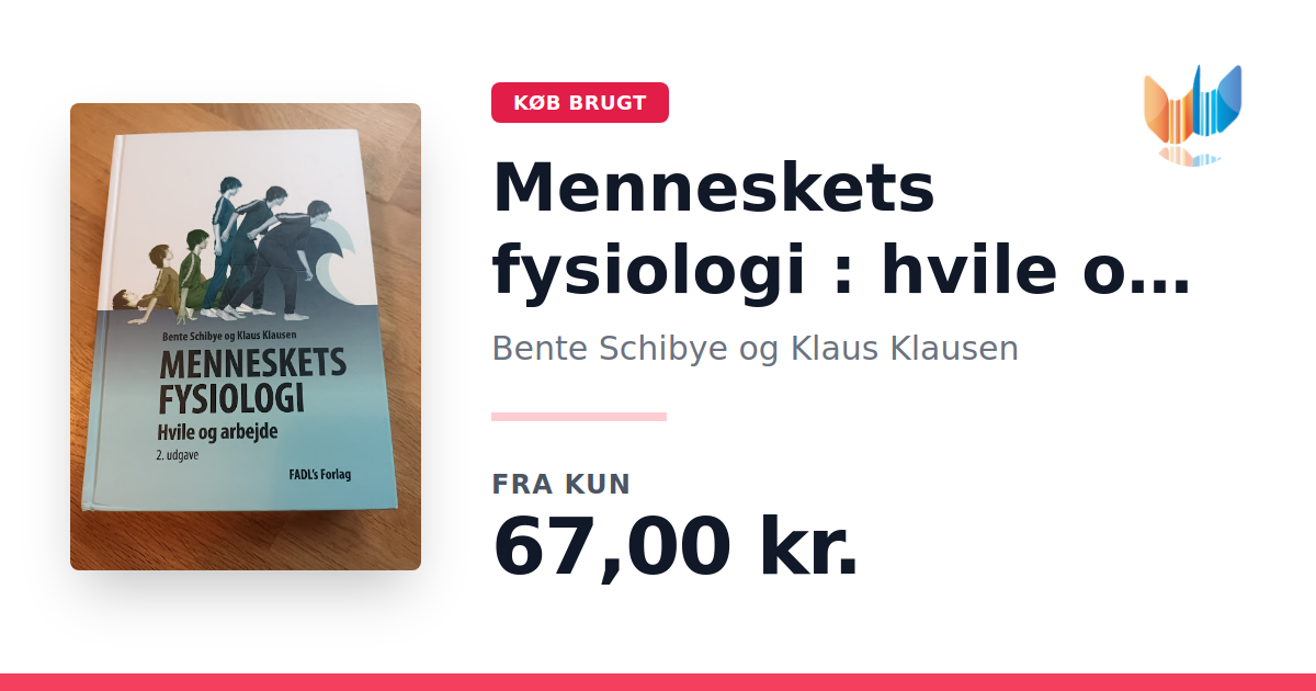 • Menneskets fysiologi : hvile og arbejde, Bente Schibye, Klaus Klausen, 9788777494543