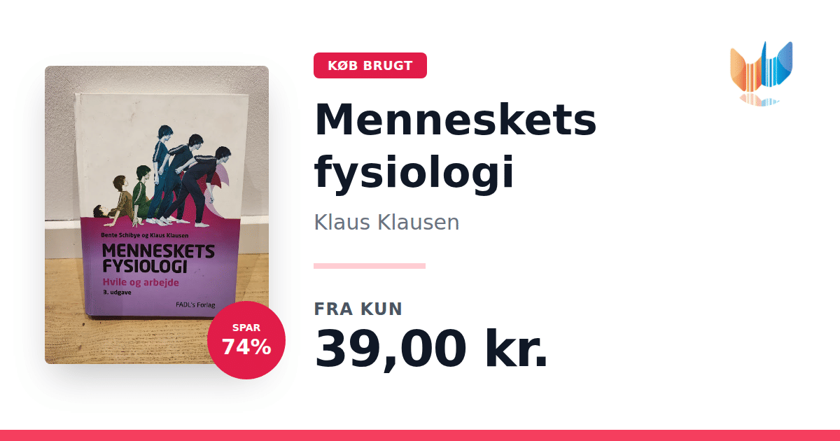 Lige nu kan du købe "Menneskets fysiologi" af Klaus Klausen til kun 39,00 kr. Du sparer hele 74% af nyprisen! Bogen du ser her er brugt, og i god stand. Vi har i øjeblikket 7 eksemplarer til salg af "Menneskets fysiologi", så husk at se de forskellige udgaver.