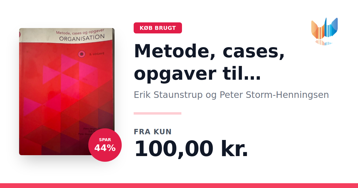 Lige nu kan du købe "Metode, cases, opgaver til Organisation" af Erik Staunstrup og Peter Storm-Henningsen til kun 100,00 kr. Du sparer hele 44% af nyprisen! Bogen du ser her er brugt, og i god stand. Vi har i øjeblikket kun et enkelt eksemplar til salg af "Metode, cases, opgaver til Organisation", så slå til mens du kan!