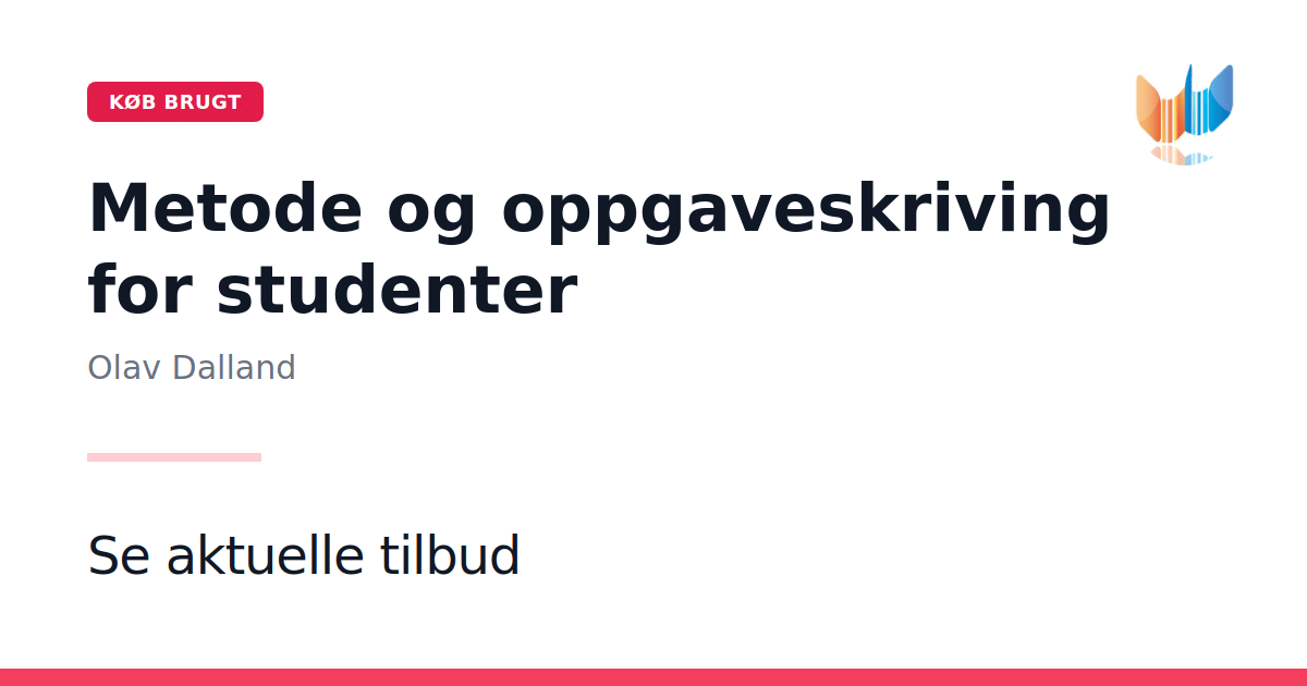 Metode og oppgaveskriving for studenter af Olav Dalland er en grundlæggende guide til at mestre opgaveskrivningsprocessen for studerende. Bogen fra 1997 præsenterer en systematisk tilgang, der hjælper med at omsætte teori til praksis, hvilket er særligt værdifuldt inden for sundheds- og socialuddannelserne. Med en klar og overskuelig struktur giver Dalland praktiske metoder og teknikker, som understøtter udviklingen af en velfunderet opgave. Teksten er pædagogisk opbygget og tilbyder en række eksempler og råd, der gør det nemmere at nedbryde komplekse emner til håndterbare dele. På 182 sider præsenterer bogen et alsidigt redskab for både nybegyndere og erfarne studerende, der ønsker at forbedre deres skrivefærdigheder. Metode og oppgaveskriving for studenter er derfor et uundværligt værktøj til dem, der søger at styrke deres akademiske kompetencer.