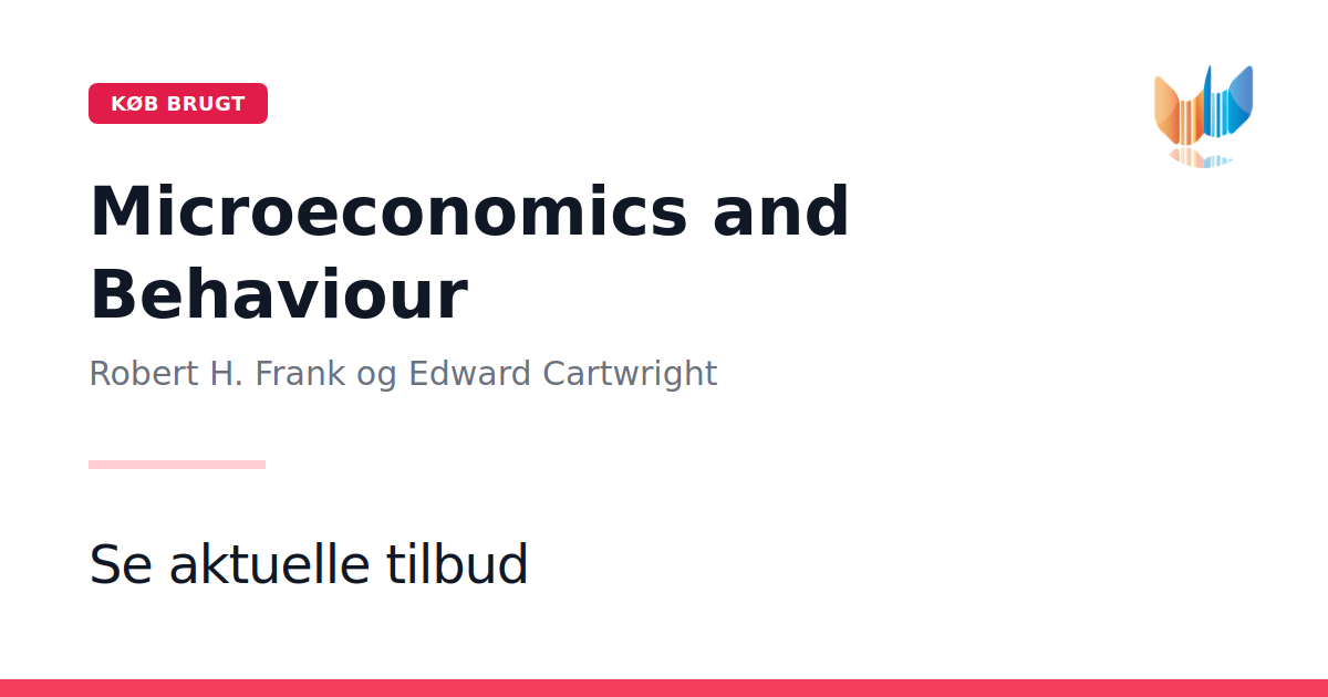 Microeconomics and Behaviour af Robert H. Frank og Edward Cartwright (2013) præsenterer mikroøkonomiens grundlæggende principper gennem et fokus på menneskelig handling og beslutningstagning. Gennem en klar, fortællemæssig tilgang får læseren indblik i, hvordan økonomiske modeller og teorier ligger til grund for dagligdagens valg. Bogen udvikler læserens økonomiske intuition ved hjælp af konkrete eksempler og argumenter, der viser, hvorfor folk handler, som de gør. Undervejs opbygges centrale analytiske redskaber, der udfordrer dig til at tænke som en økonom. Denne paperback-udgave på 627 sider tilbyder både studerende og engagerede læsere et solidt fundament i mellemste mikroøkonomi.