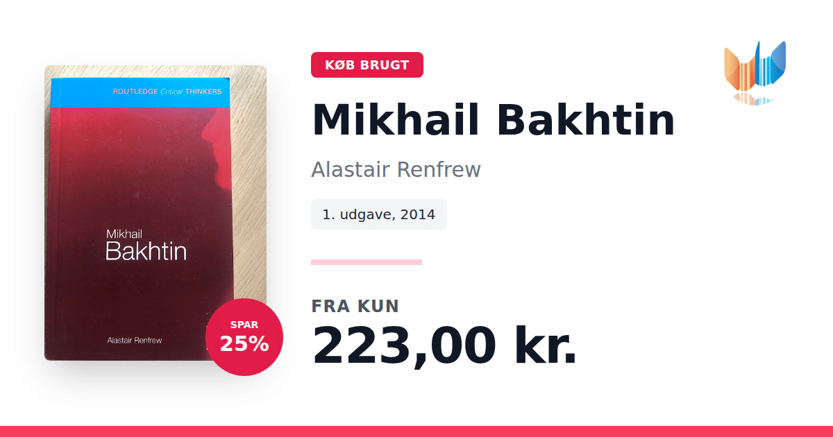 Lige nu kan du købe "Mikhail Bakhtin" af Alastair Renfrew til kun 223,00 kr. Du sparer hele 25% af nyprisen! Bogen du ser her er brugt, og i perfekt stand. Vi har i øjeblikket kun et enkelt eksemplar til salg af "Mikhail Bakhtin", så slå til mens du kan!