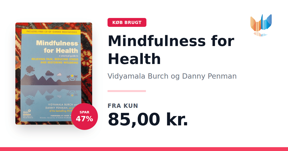 Lige nu kan du købe "Mindfulness for Health" af Vidyamala Burch og Danny Penman til kun 85,00 kr. Du sparer hele 47% af nyprisen! Bogen du ser her er brugt, og i perfekt stand. Vi har i øjeblikket kun et enkelt eksemplar til salg af "Mindfulness for Health", så slå til mens du kan!