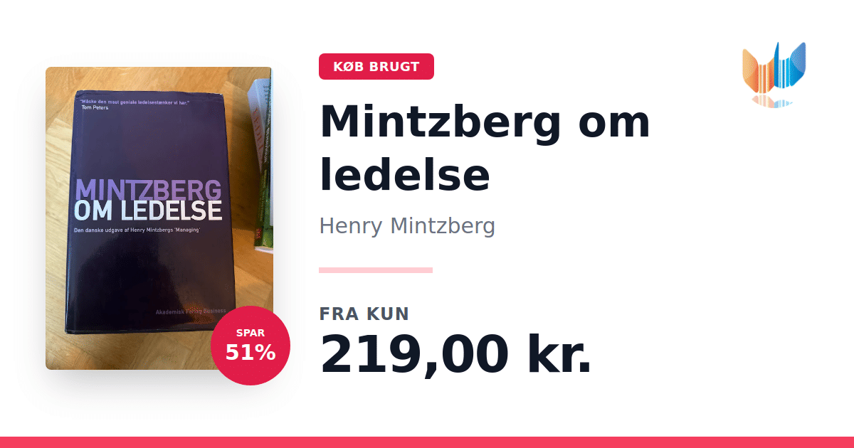 Lige nu kan du købe "Mintzberg om ledelse" af Henry Mintzberg til kun 219,00 kr. Du sparer hele 51% af nyprisen! Bogen du ser her er brugt, og i god stand. Vi har i øjeblikket kun et enkelt eksemplar til salg af "Mintzberg om ledelse", så slå til mens du kan!