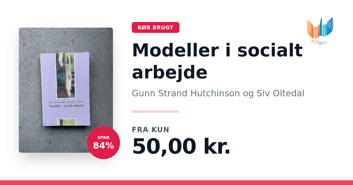 Lige nu kan du købe "Modeller i socialt arbejde" af Gunn Strand Hutchinson og Siv Oltedal til kun 50,00 kr. Du sparer hele 84% af nyprisen! Bogen du ser her er brugt, og i perfekt stand. Vi har i øjeblikket 5 eksemplarer til salg af "Modeller i socialt arbejde", så husk at se de forskellige udgaver.