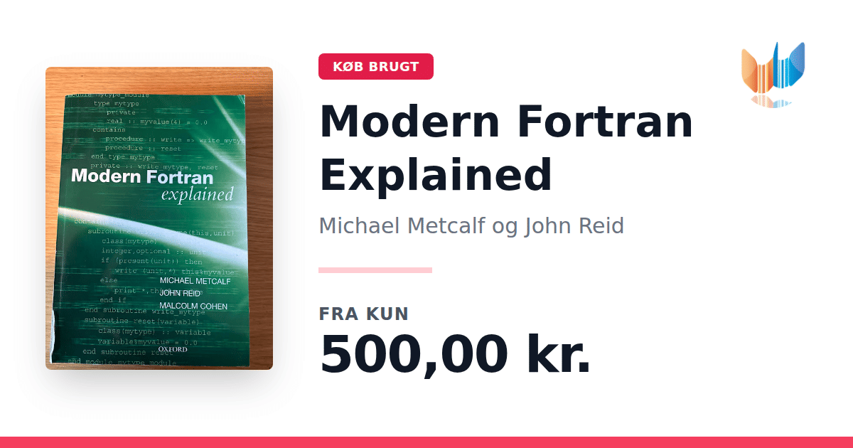 Lige nu kan du købe "Modern Fortran Explained" af Michael Metcalf og John Reid til kun 500,00 kr. Bogen du ser her er brugt, og i god stand. Vi har i øjeblikket kun et enkelt eksemplar til salg af "Modern Fortran Explained", så slå til mens du kan!