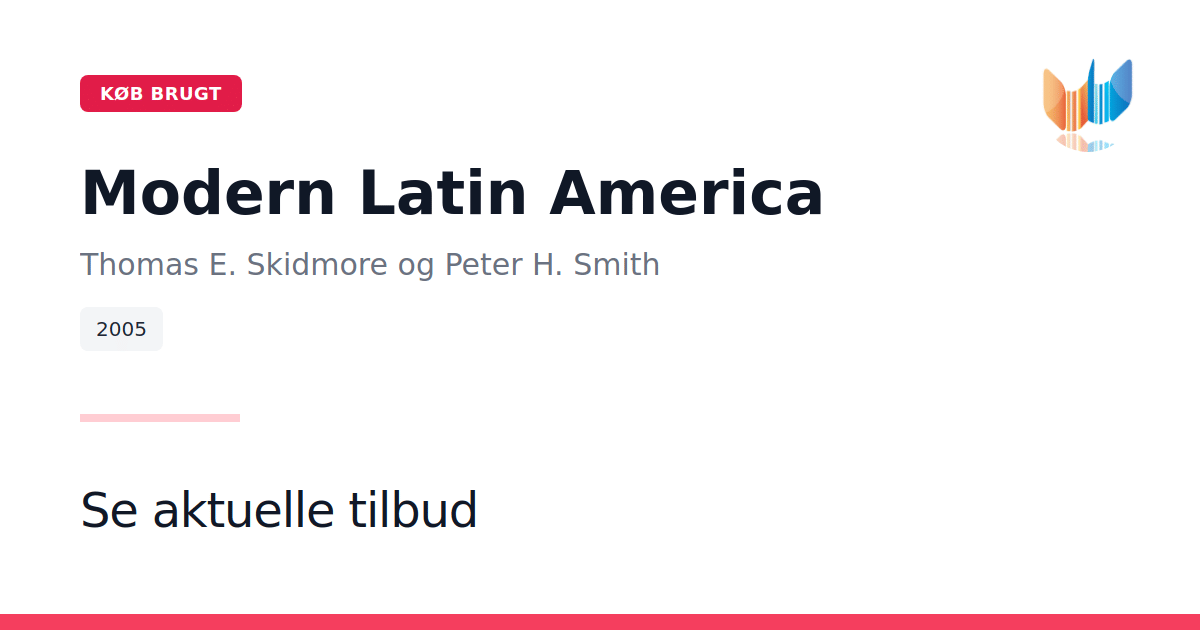 Modern Latin America, i sin sjette udgave fra 2005, er en levende fortolkende historie og det førende lærebogsværk inden for latinamerikansk studier. Omfattende opdateret og revideret præsenterer denne udgave et nyt kapitel om Colombias historie fra uafhængighedskrigene til nutidens voldelige konflikter. Derudover afdækker forfatterne centrale temaer som USA-Latinamerika-relationer efter 11. september, globalisering, narkotikahandel, kvinders roller i samfund og politik samt demokratiets skrøbelighed. Bogen inkluderer sociokulturelle sektioner og indrammende bokse i næsten hvert kapitel, som udforsker emner fra eksilets psykologi og Santeria på Cuba til baseball i Den Dominikanske Republik og latinamerikansk musiks popularitet i USA. Alle politiske og økonomiske data er ajourført, så læseren får et nutidigt billede af regionens udvikling. Som i tidligere udgaver benytter Thomas E. Skidmore og Peter H. Smith en indgående casestudy-tilgang, der leder læseren gennem de vigtigste lande i Latinamerika og fremhæver samspillet mellem Europa og den Nye Verden, raceblandinger, militærkup og amerikansk intervention. Med et fremadskuende perspektiv er Modern Latin America en uundværlig tekst for bachelorstudier i moderne latinamerikansk historie, samfund og politik.