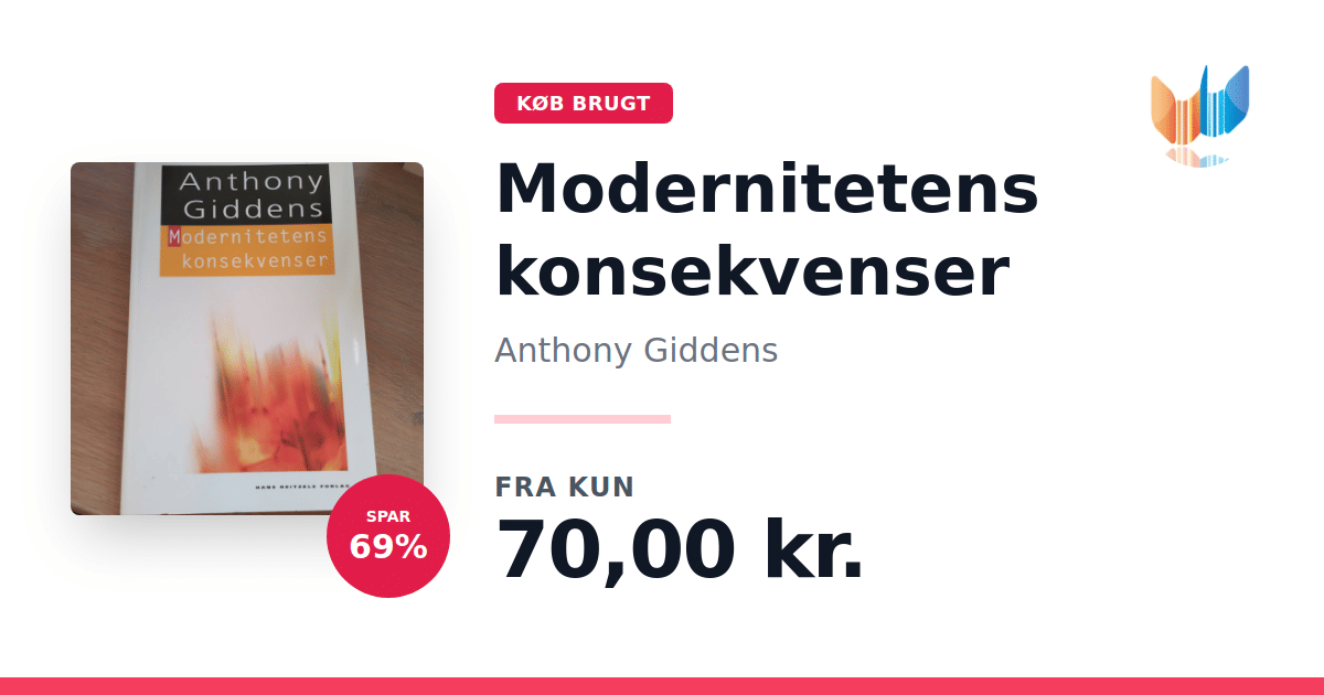 Lige nu kan du købe "Modernitetens konsekvenser" af Anthony Giddens til kun 70,00 kr. Du sparer hele 69% af nyprisen! Bogen du ser her er brugt, og i god stand. Vi har i øjeblikket 2 eksemplarer til salg af "Modernitetens konsekvenser", så husk at se de forskellige udgaver.