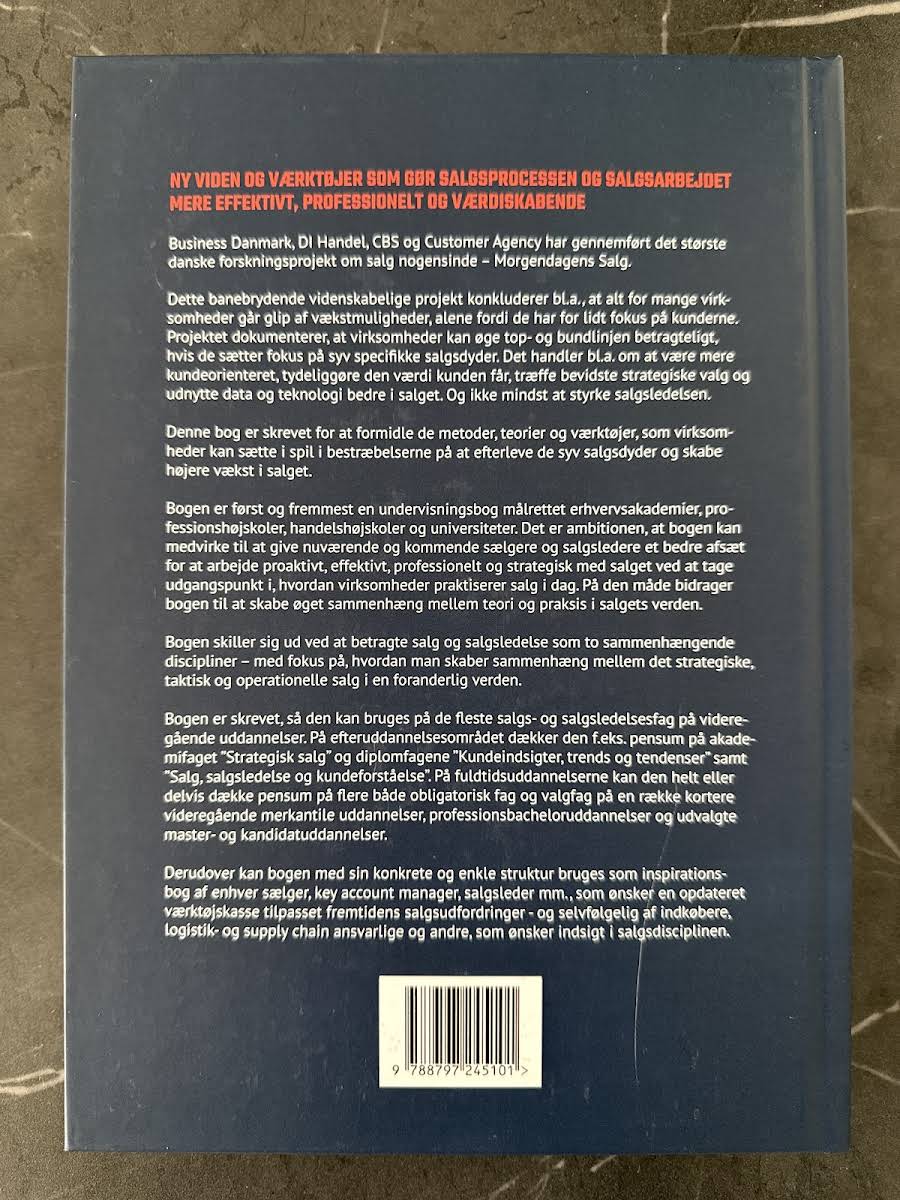 Morgendagens Salg & Salgsledelse åbner op for en dybdegående undersøgelse af, hvordan salg og salgsledelse skal udvikles for at klare morgendagens udfordringer. Med udgangspunkt i omfattende forskning præsenterer forfatterne Mogens Bjerre og Peter Aakjær en række strategier og modeller, der gør virksomheden skarpere på både nysalg, mersalg og fastholdelse af eksisterende kunder. Bogen rummer over 350 sider fyldt med praktiske forslag og anerkendte teoretiske perspektiver. Her findes opskrifterne på, hvordan de 7 hovedudfordringer i salget bedst tackles, så du og din organisation kan blive betydeligt bedre til at tilpasse sig en stadig mere strategisk salgsfunktion og en udviklende salgsorganisation. Med fokus på trends, kundeindsigt og effektive salgsprocesser giver bogen et solidt fundament for, hvordan du allerede i dag kan planlægge og implementere morgendagens salgsstrategier. Den er derfor en uundværlig lære- og opslagsbog for alle, der ønsker at styrke salgsindsatsen og lede med indsigt i en tid med store forandringer i markedet.