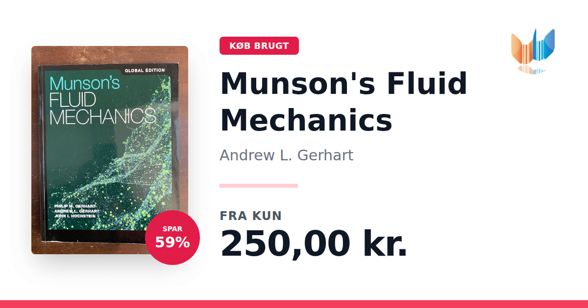 Lige nu kan du købe "Munson's Fluid Mechanics" af Andrew L. Gerhart til kun 250,00 kr. Du sparer hele 59% af nyprisen! Bogen du ser her er brugt, og i god stand. Vi har i øjeblikket kun et enkelt eksemplar til salg af "Munson's Fluid Mechanics", så slå til mens du kan!