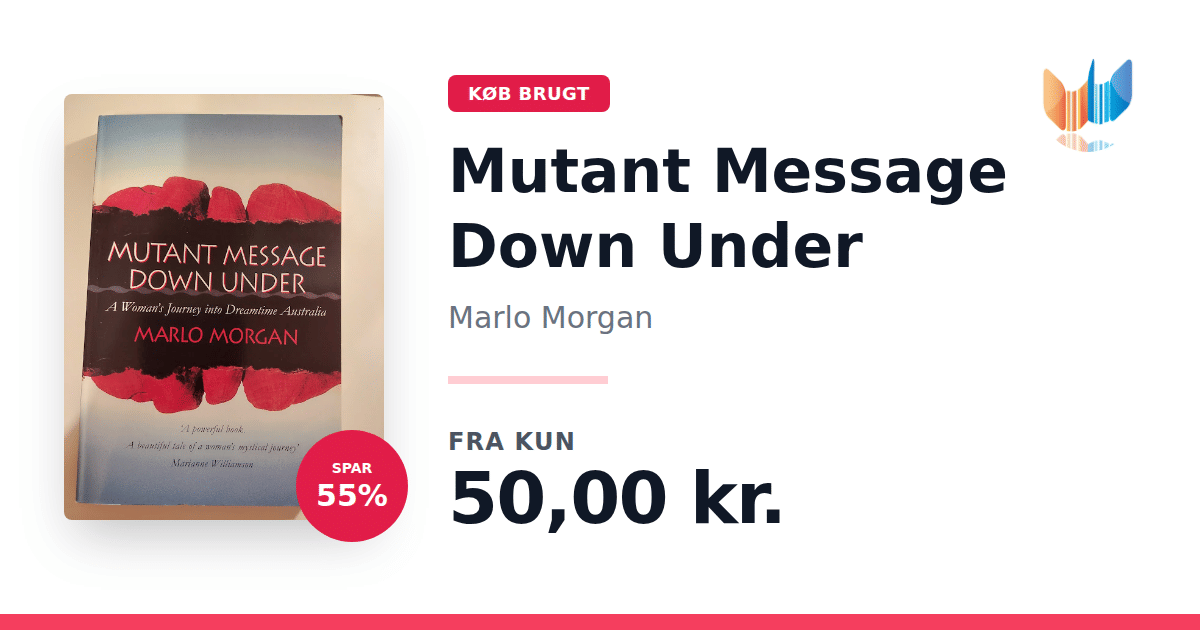 Lige nu kan du købe "Mutant Message Down Under" af Marlo Morgan til kun 50,00 kr. Du sparer hele 55% af nyprisen! Bogen du ser her er brugt, og i perfekt stand. Vi har i øjeblikket kun et enkelt eksemplar til salg af "Mutant Message Down Under", så slå til mens du kan!
