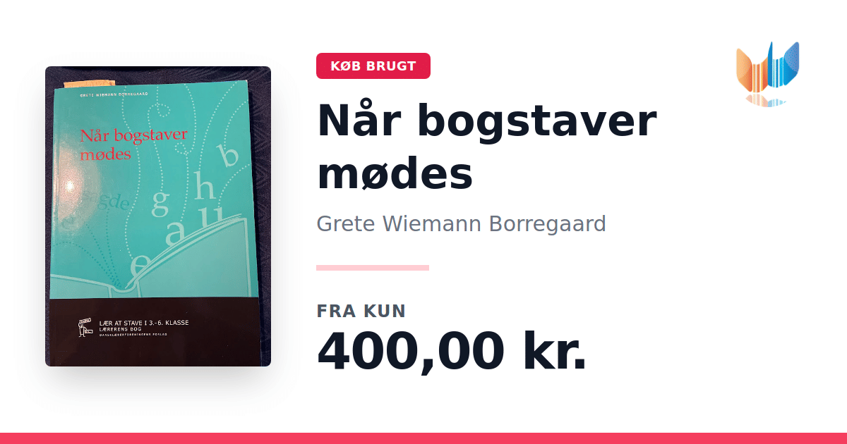 Lige nu kan du købe "Når bogstaver mødes" af Grete Wiemann Borregaard til kun 400,00 kr. Bogen du ser her er brugt, og i god stand. Vi har i øjeblikket 3 eksemplarer til salg af "Når bogstaver mødes", så husk at se de forskellige udgaver.
