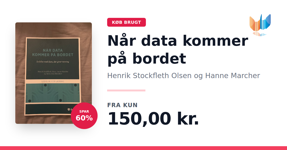 Lige nu kan du købe "Når data kommer på bordet" af Henrik Stockfleth Olsen og Hanne Marcher til kun 150,00 kr. Du sparer hele 60% af nyprisen! Bogen du ser her er brugt, og i perfekt stand. Vi har i øjeblikket 2 eksemplarer til salg af "Når data kommer på bordet", så husk at se de forskellige udgaver.
