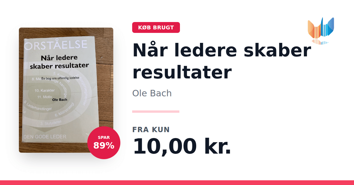 Lige nu kan du købe "Når ledere skaber resultater" af Ole Bach til kun 10,00 kr. Du sparer hele 89% af nyprisen! Bogen du ser her er brugt, og i god stand. Vi har i øjeblikket 2 eksemplarer til salg af "Når ledere skaber resultater", så husk at se de forskellige udgaver.